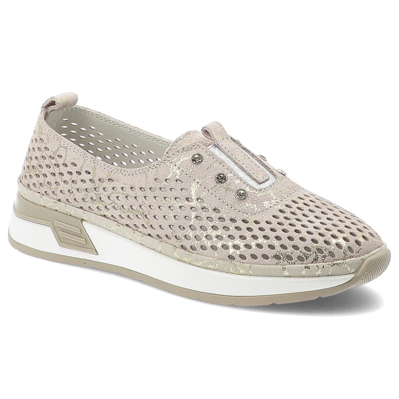 Szukasz idealnych półbutów damskich na co dzień? Model Półbuty damskie Vinceza, cholewka ze skóry naturalnej z metalicznym połyskiem wsuwany fason z zabudowanym przodem, beżowe, 93226 to połączenie stylu, wygody i ponadczasowego designu.
