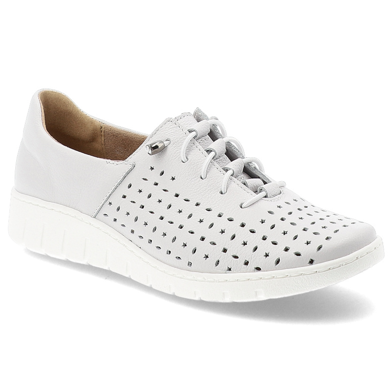 Półbuty damskie Wasak, ze skóry naturalnej licowej ażurowa cholewka sznurowanie lekka podeszwa casual, białe, 0810 – biały 20051-B