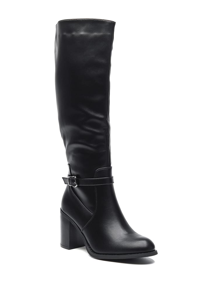 • – materiał wierzchni ze skóry syntetycznej- zapięcie: suwak- noski: zaokrąglone- noski i zapiętki: wzmocnione- detale: ozdobna klamra- forma obcasa: blokowy- podeszwa: bez profilu
