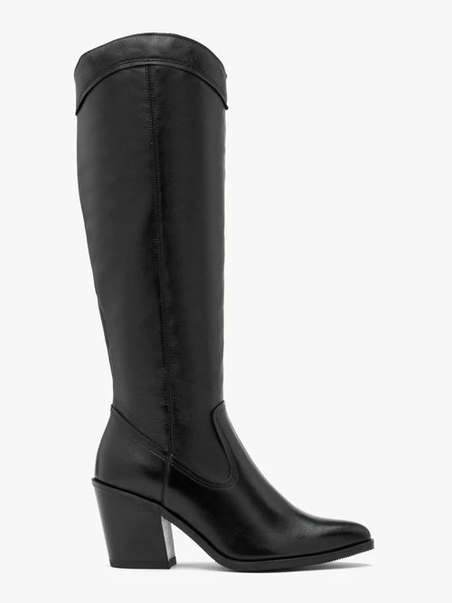 Wysokie skórzane kozaki typu kowbojki – Czarny 327048