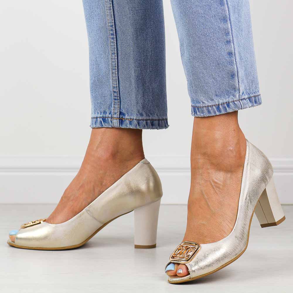 Złote przec. skórzane Polskie czółenka damskie na słupku Deoni D544A – Złoty 28667